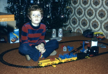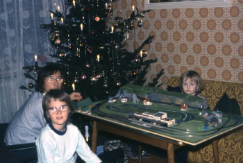 Ganz klassisch: Der Vater hatte eine Anlage Spur N auf einer Platte in Wohnzimmertischgröße (2 spuriger Rennkurs mit Kreuzung), auf der ein paar mal im Jahr gespielt wurde (Anfangs war ich nur Zuschauer) und die im übrigen Jahr im Keller stand. In jüngeren Jahren hatte ich natürlich eine Holzeisenbahn und im Schulalter eine Faller.